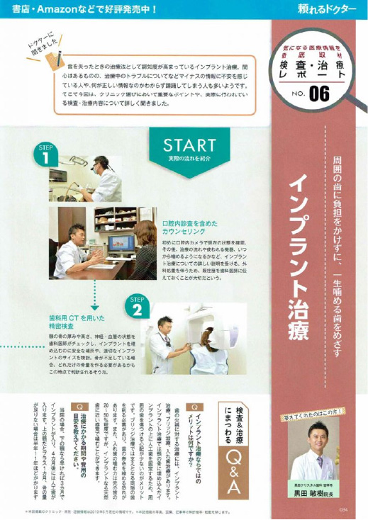歯を失ったときの治療方法としてのインプラント治療。このクリニック選び、実際の検査・治療内容について取材を受けました。