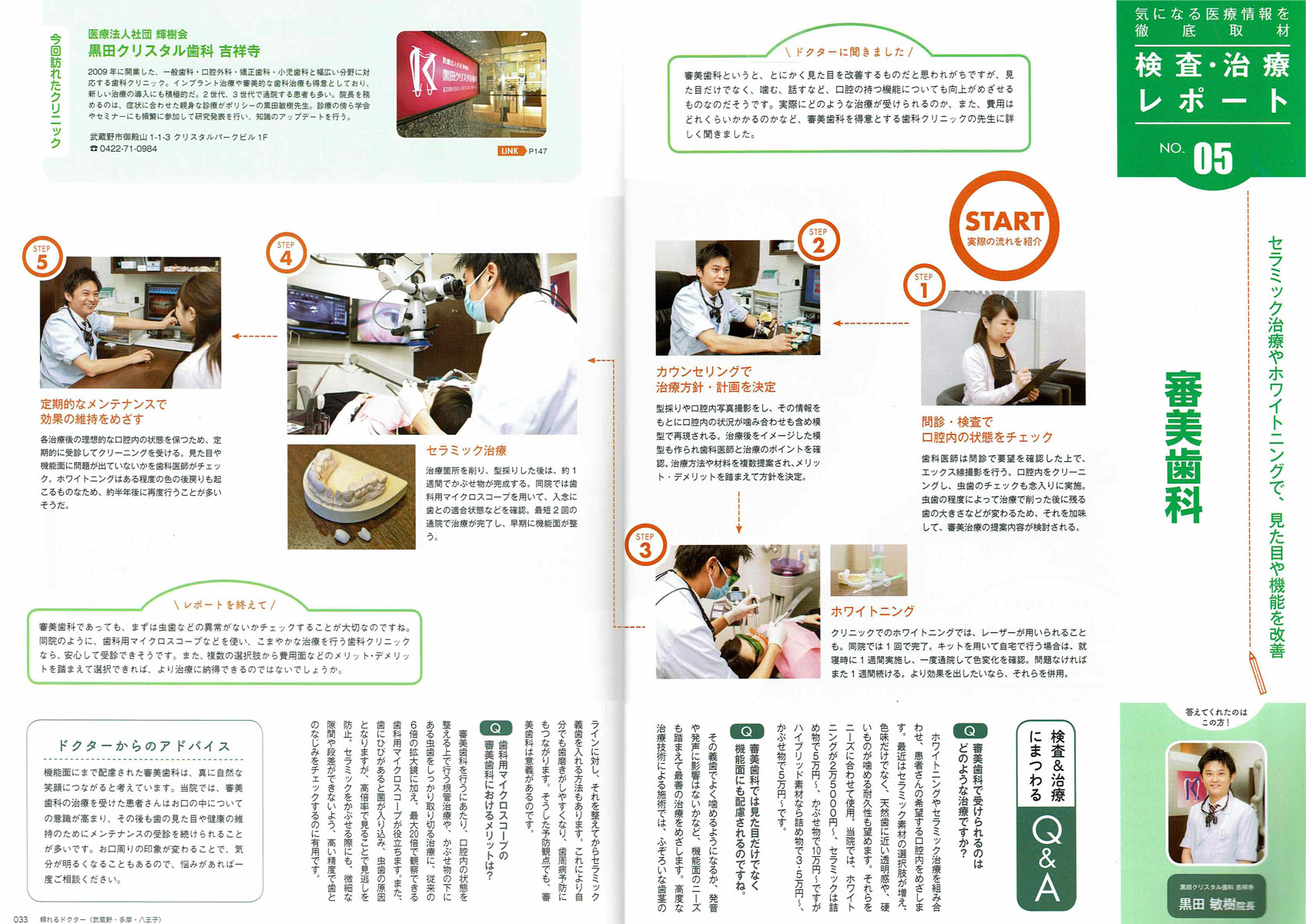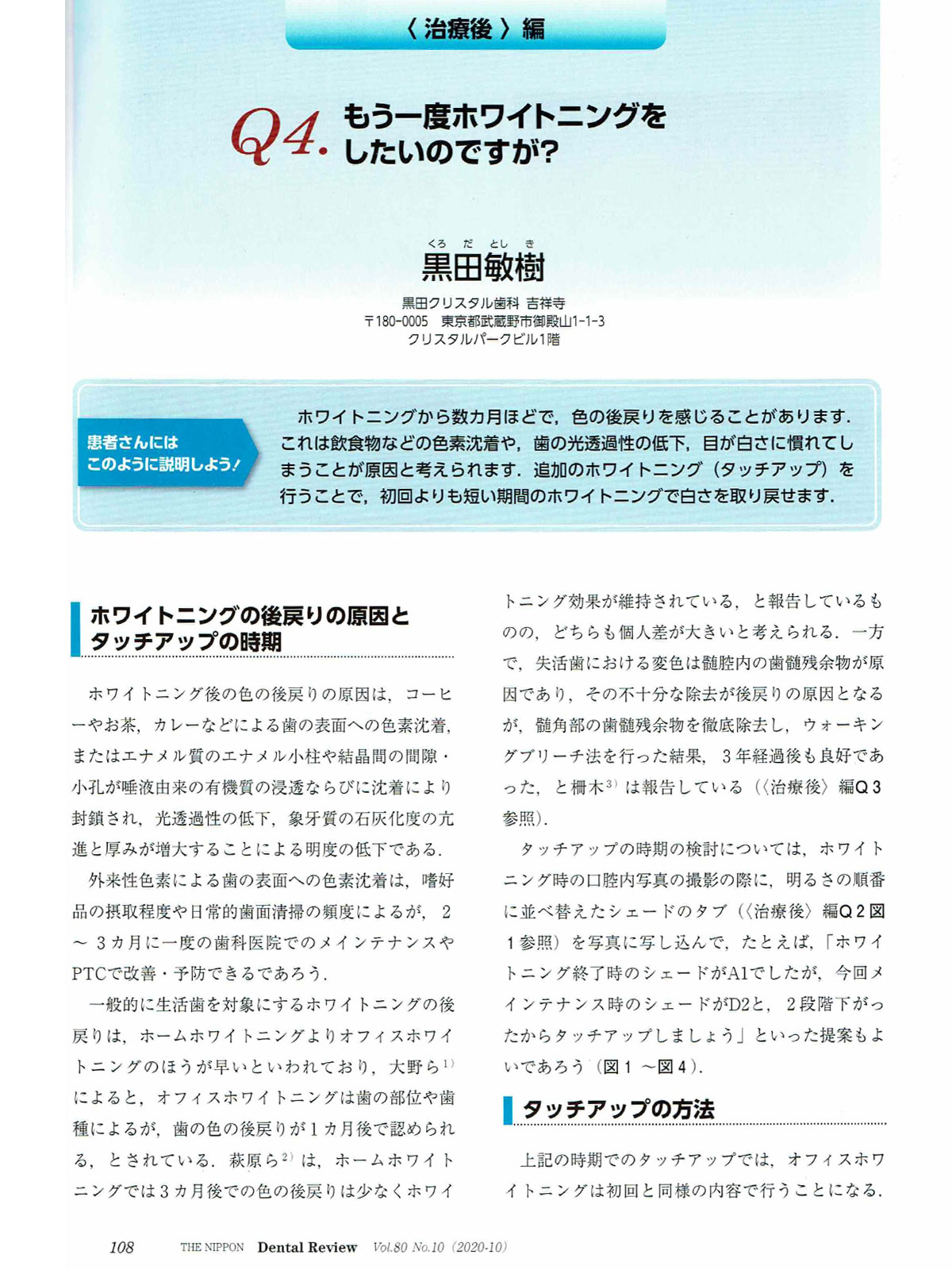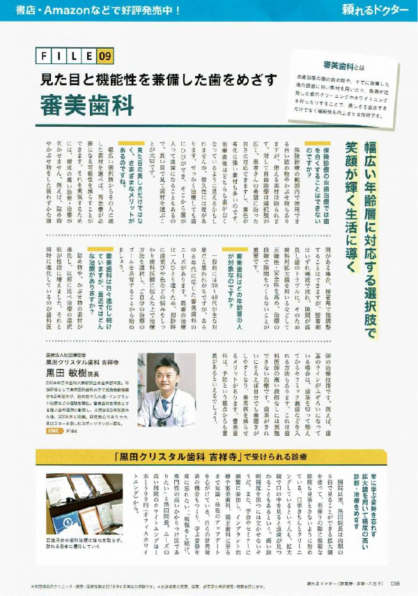 この中の、10月号の治療後編のQ4の「もう一度ホワイトニングしたいのですが?」で黒田クリスタル歯科 吉祥寺院長 黒田が、2ページ執筆させて頂きました。